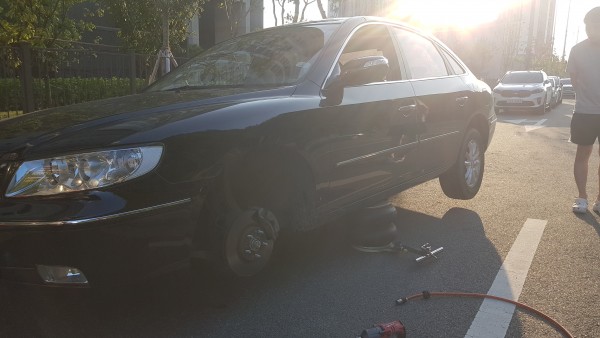 광양 황금동 그랜져TG 뒷타이어 2짝 교체와 위치 교환.