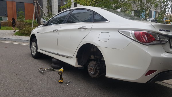 순천 가곡동 대광로제비앙 소나타 타이어 찢어짐으로 교체작업.