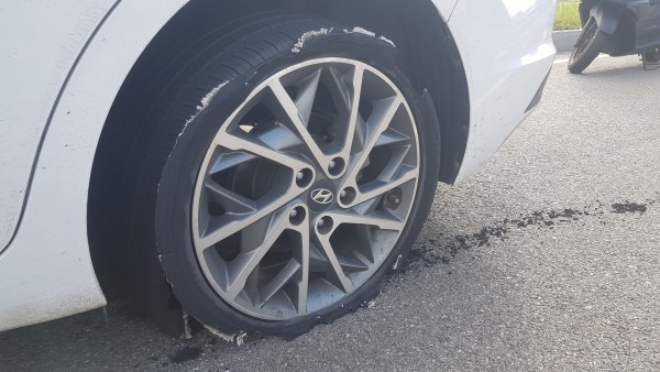 광양 황금동 아반떼 뒷타이어 찢어짐으로 비대면 방문 교체.