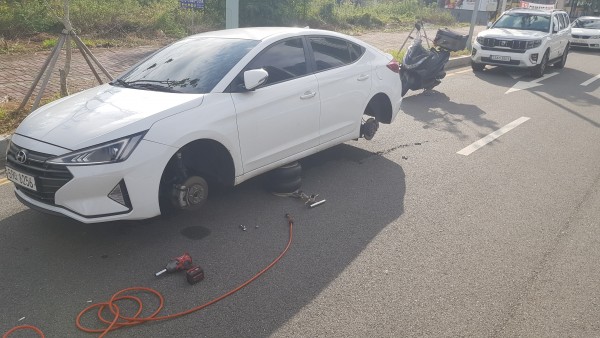 광양 황금동 아반떼 뒷타이어 찢어짐으로 비대면 방문 교체.